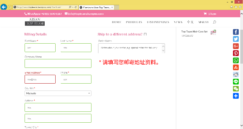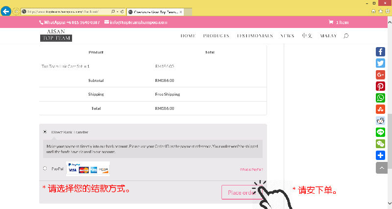 当您想在我们的网站购买微女神洗发液或多样产品,您可以注册一个免费帐户储存您的个人资料以方便以后购买。 如果您尚未登录或尚未成为我们的会员,您也可以在无需登录的条件下继续购买和进行结帐。
